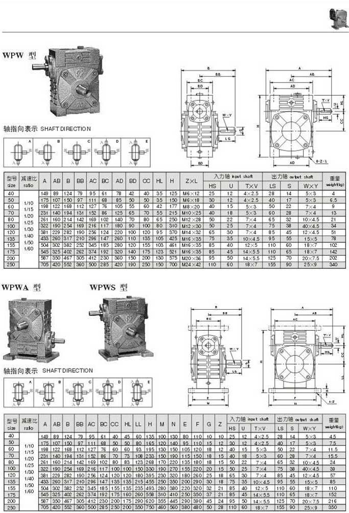 WPW,WPWA,WPWS型型號(hào)參數(shù)圖表