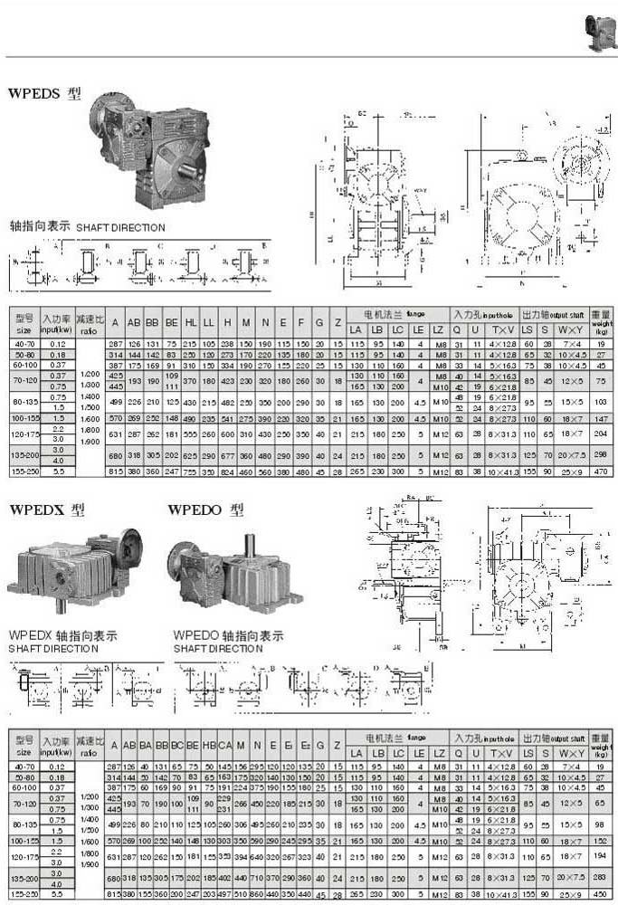 WPEDS,WPEDX,WPEDO型型號(hào)參數(shù)圖表