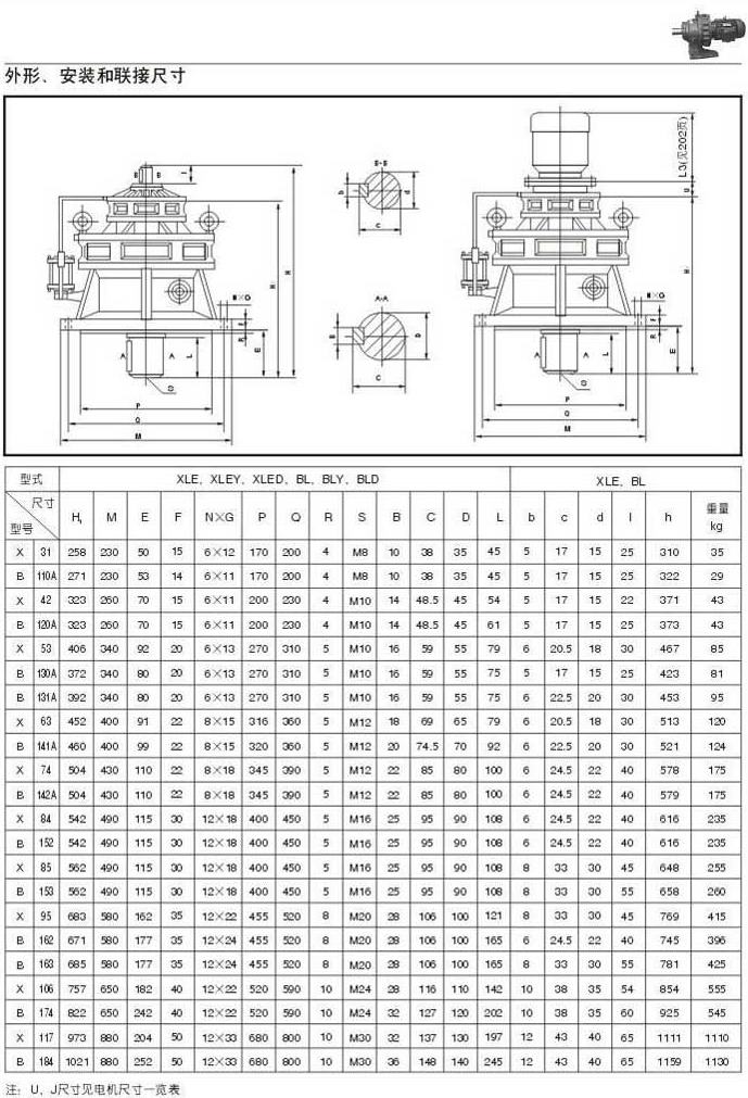 X . B擺線針輪減速機外型圖,安裝和聯(lián)結尺寸四 30